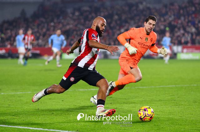 브렌트포드는 특유의 초반 강력한 속공을 선보였다. 전반 5분 위사가 슈팅을 했는데 빗나갔다. 위사와 음뵈모가 맨시티 뒷공간을 공략했다. 전반 14분 음뵈모 슈팅은 오르테가가 막았고 전반 19분 위사 슈팅은 골문을 벗어났다.
