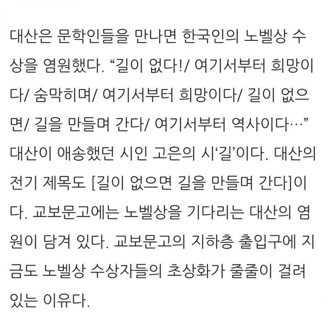 한국인 노벨상을 염원했는데 자기가 지원한 작가가 노벨상