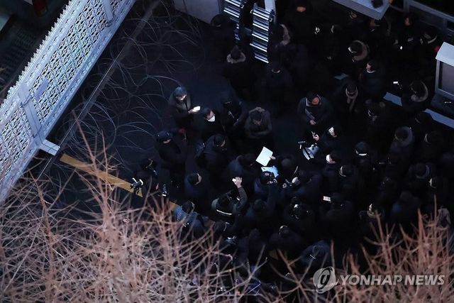고위공직자범죄수사처(공수처)와 경찰이 윤석열 대통령에 대한 2차 체포영장 집행에 나선 15일 서울 용산구 한남동 대통령 관저 입구에서 경찰이 관저 진입을 시도하고 있다. / 연합뉴스