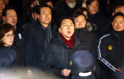 김기현 국민의힘 의원은 이날 서울 한남동 관저 앞에서 “고위공직자범죄수사처와 국가수사본부는 불법 체포영장 집행을 즉각 중단할 것을 촉구한다”며 “공수처와 국수본이 불법적 체포 영장 집행을 강행하면서 국민적 우려와 혼란을 자초했다”고 비판했다.
