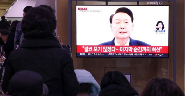 윤석열 대통령의 탄핵소추안이 국회에서 가결된 지난달 14일 오후 서울역에서 시민들이 윤석열 대통령의 대국민 담화를 TV를 통해 지켜보고 있다. / 연합뉴스