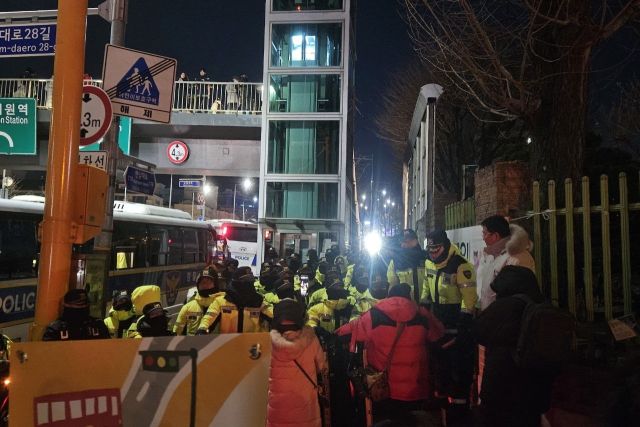 15일 새벽 윤석열 대통령 체포영장이 재집행된 가운데, 서울 용산 한남동 관저 앞은 윤 대통령 지지자들이 모여들며 긴장감이 고조되는 분위기다.