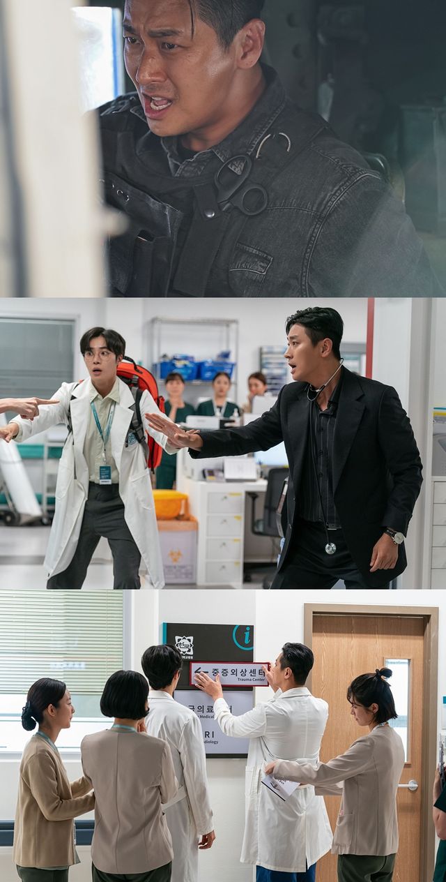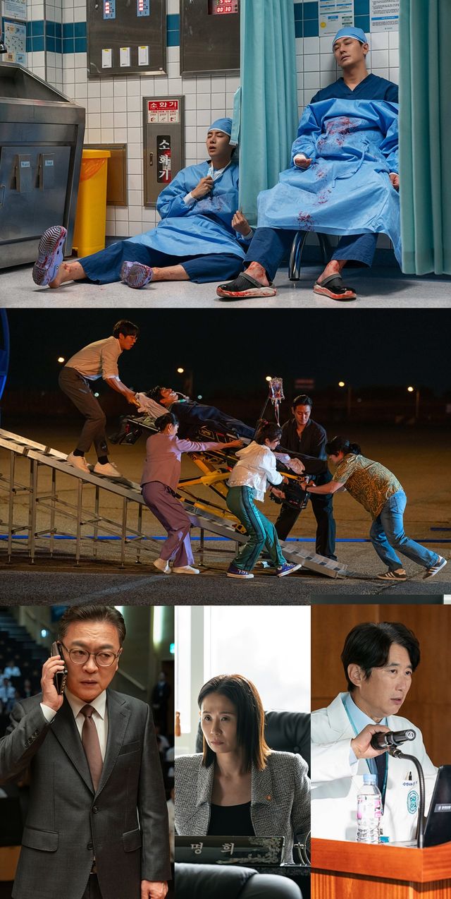 마취통증의학과 레지던트 박경원(정재광)은 ‘신의 손’ 백강혁도 인정한 실력자다. 백강혁과 호흡을 맞추며 수술을 지원하는 박경원은 흔들림 없이 예리한 눈빛으로 범상치 않은 면모를 짐작게 한다. 항문외과 과장 한유림(윤경호)의 다이내믹한 모습도 포착됐다. 넉살 좋은 얼굴로 기조실장 옆에서 웃으며 ‘백강혁 타도’를 외치던 그가 직접 안전모를 쓰고 현장에 도착한 모습은 앞으로 어떤 일이 일어날 것인지에 대한 궁금증을 자극한다.