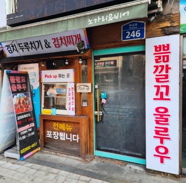 서울 강서구 화곡동에 '쁢깔꼬 울루우'라는 이색적인 이름의 김치 두루치기 가게가 화제를 모으고 있다.