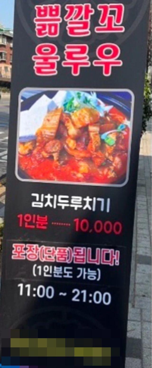 식당은 김치 두루치기를 단일 메뉴로 제공하며 가격은 1만원이다.