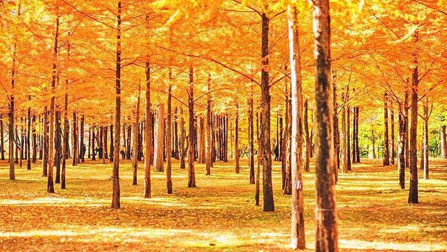 단풍잎이 둘러진 남이섬 오솔길 모습. / 남이섬 제공
