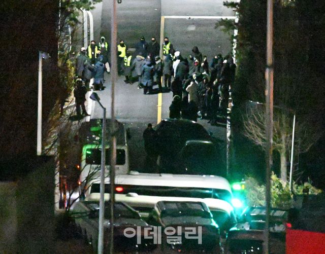 고위공직자범죄수사처와 경찰이 윤석열 대통령에 대한 2차 체포영장 집행에 나선 15일 오전 서울 용산구 한남동 대통령 관저 진입로에 경호처 관계자들이 대기하고 있다. (사진=이데일리 방인권 기자)