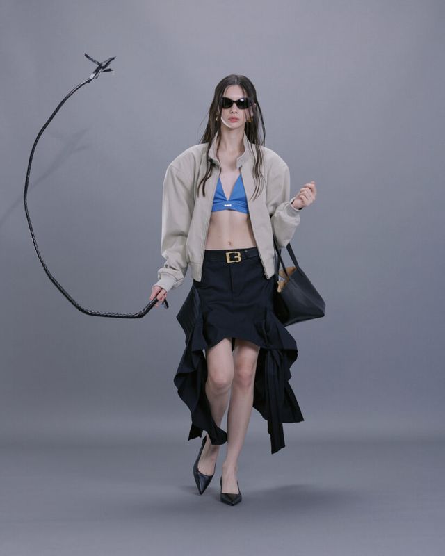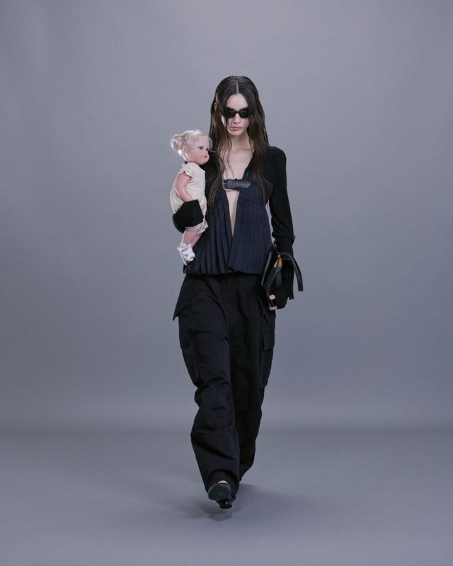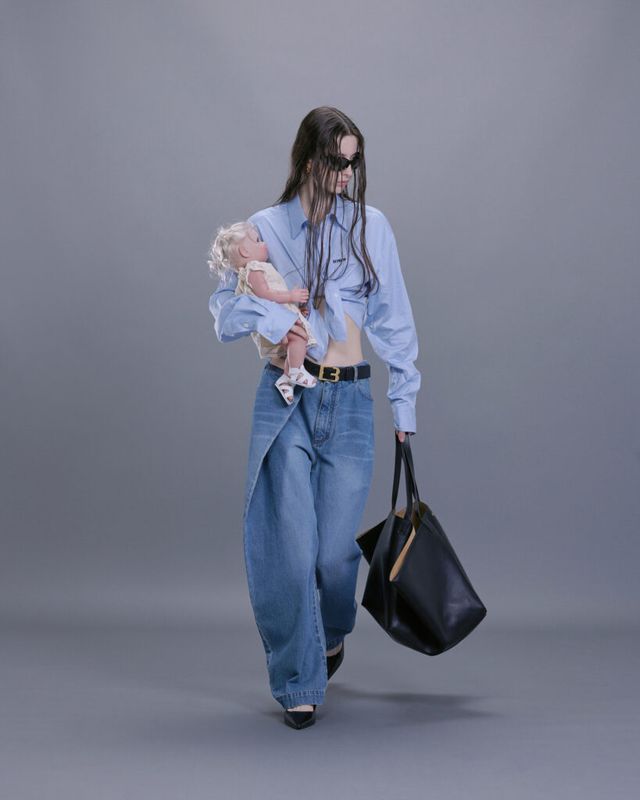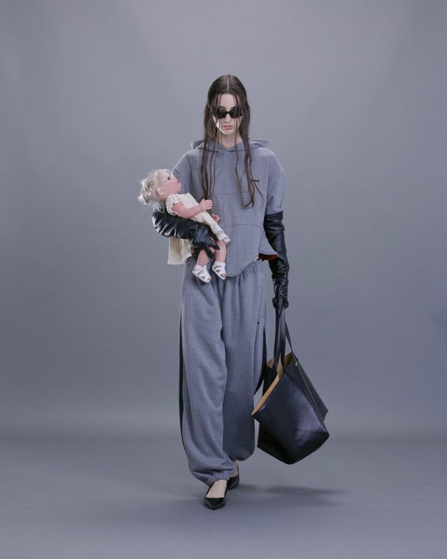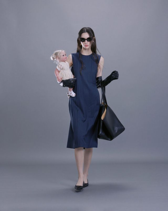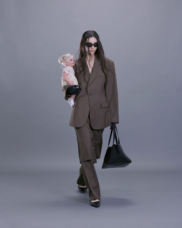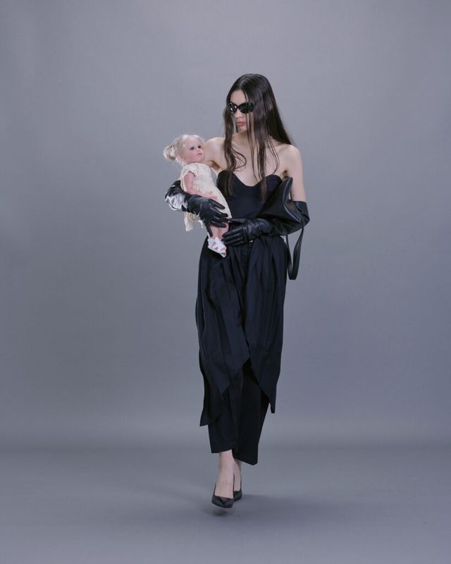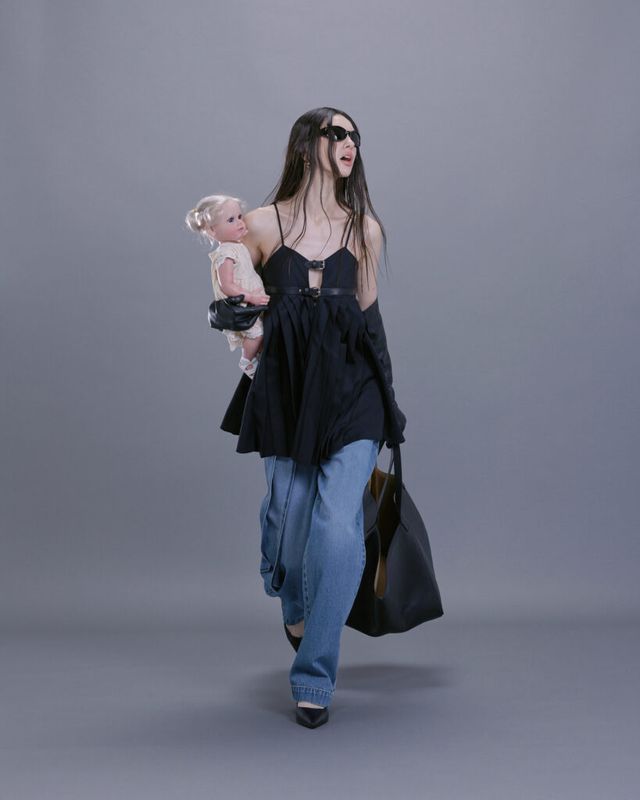 NOTE 영화 <킬 빌(Kill Bill)>에 등장하는 주인공 키도와 블루 벨벳의 캐릭터 도로시를 떠올리며, ‘여자, 엄마 그리고 킬러’라는 공통 키워드를 본봄의 취향과 해석, 동시대적 미감으로 변주했다. 가슴을 조이는 벨트 디테일 톱과 시그니처 디자인의 데님 팬츠 등 각각의 아이템과 스타일링도 매력적이지만, 인형을 한 손에 안은 채 선글라스를 쓴 연출도 상당히 흥미로웠다.