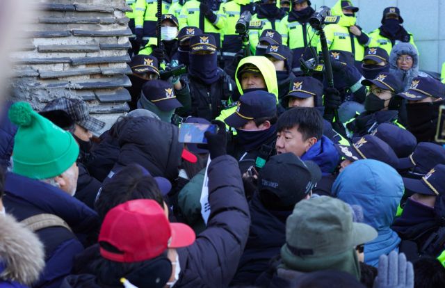 체포영장 집행이 진행된 5시간여 동안 관저 앞에 모인 윤 대통령 지지자들은 체포를 막겠다며 경찰과 충돌을 벌였다.