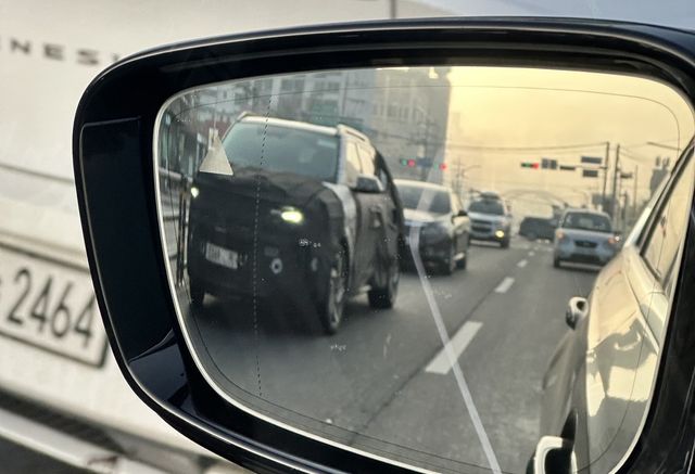 아쉽게도 이 스파이샷은 차량의 정면 디자인을 포착하는데 실패했다. 사이드미러로 일부를 포착하긴 했지만, 미러가 디자인을 왜곡하면서 디자인을 확인하기는 쉽지 않다.