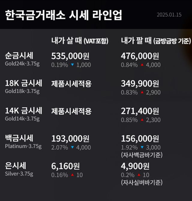 순금(24K) : 매입가 53만 5000원 / 매도가 47만 6000원
