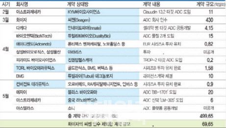 빅파마들의 관심도 높다. 작년 ADC 글로벌 기술이전 거래는 약 25건이다. 특히 머크, 얀센, 사노피 등이 적극적으로 ADC 파이프라인 및 플랫폼을 도입했다.