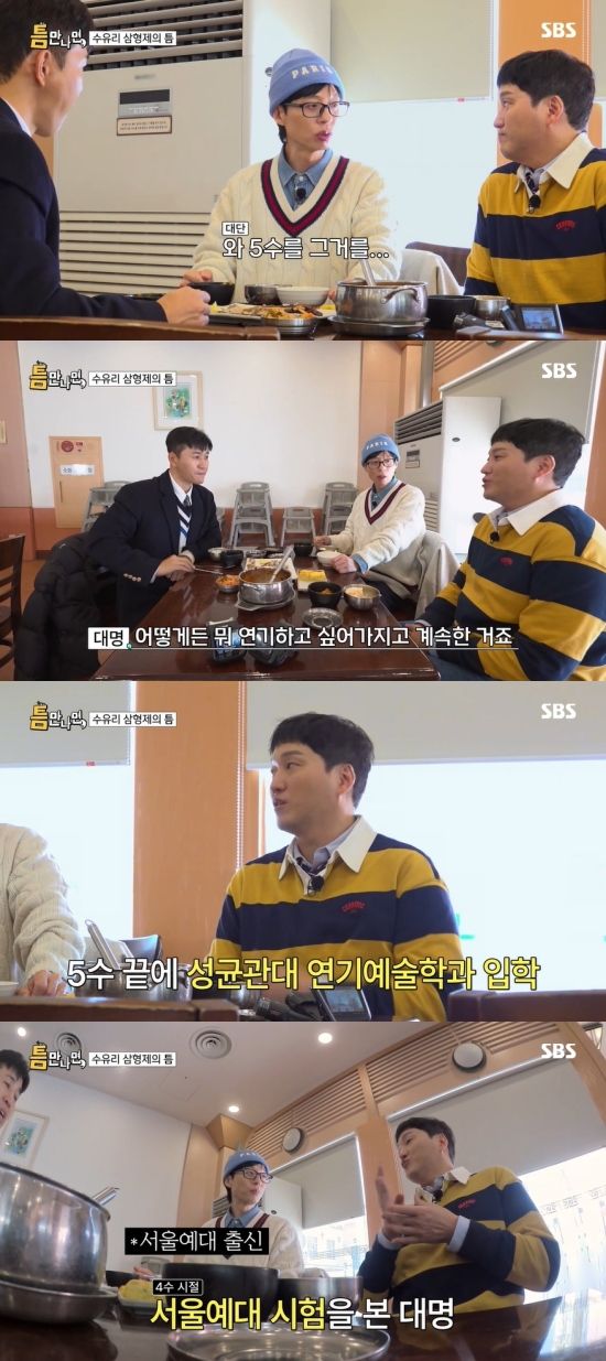 그는 "계속 왔다갔다하면서 준비하다가 5수 끝에 성균관대에 입학했다"고 밝혀 모두를 감탄케 했다.