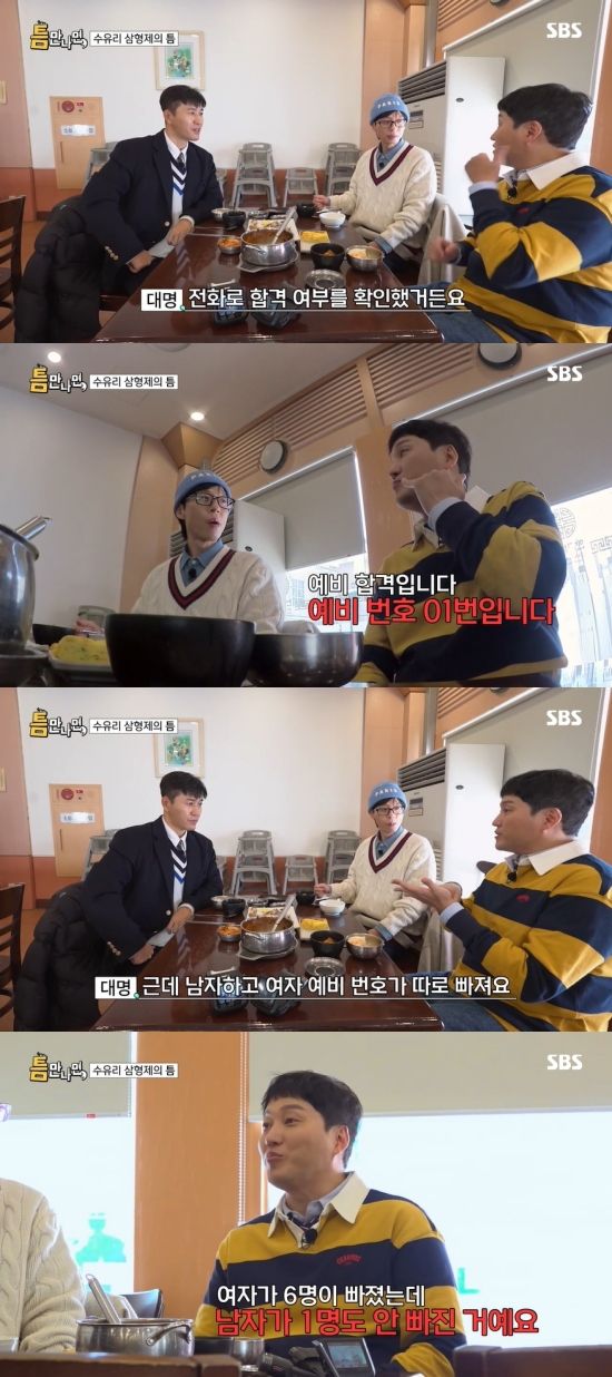 김대명은 "남자하고 여자하고 번호가 따로 빠진다. 여자가 6명이 빠졌는데 남자가 한 명도 빠지지 않아서 떨어졌다"고 덧붙여 안타까움을 자아냈다.