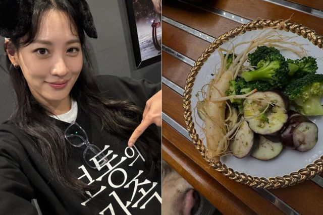 수현은 최근 SNS에상추, 브로콜리, 세 가지 종류의 버섯 등 다양한 채소가 담긴 접시를 공개했다.