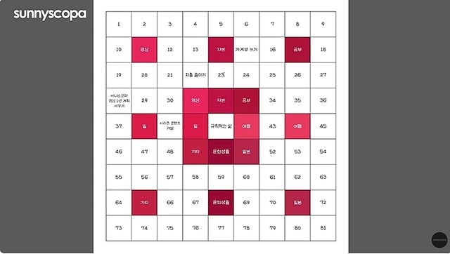 만다라트표 예시 / 유튜브 'SUNNYSCOPA'
