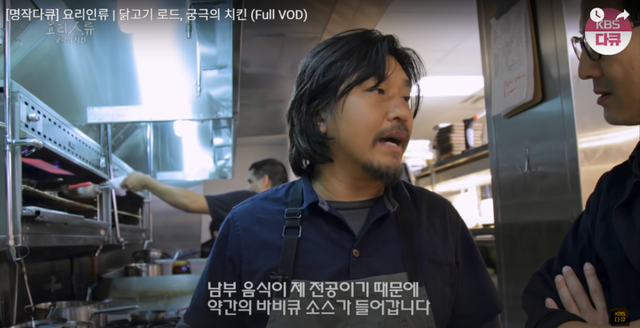 치킨을 튀기는 것 등은 일반적인 프라이드 치킨이고… 고추장 소스가 등장함.