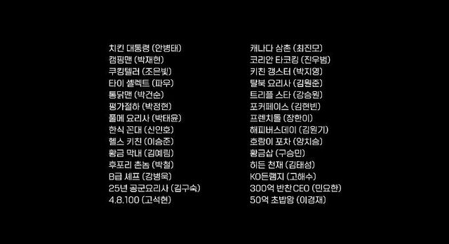 다같이 고생한 흑수저 셰프들 엔딩장면에 이름 공개 해줌