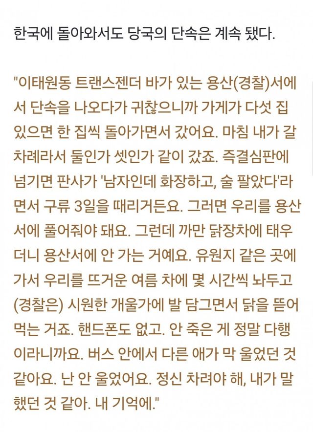 1세대 트랜스젠더인 연극배우 색자의 인터뷰에도 나와있음.
