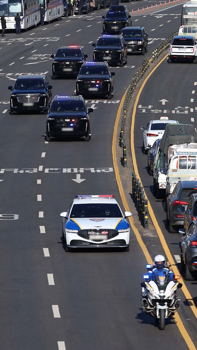 이 외에도 메르세데스-벤츠의 스프린터 밴과 미니버스인 현대 카운티가 행렬에 함께 했다. 대통령 관저 경내에서는 앞뒤로 검은색 그랜저가 서 있기도 했지만 일반 도로에 올라와서는 경찰차가 이동을 주도했다. 전방에서 행렬을 이끈 경찰차는 제네시스 G90으로 서울시 경찰청에서 경호용으로 운용 중인 것으로 알려졌다. 행렬의 맨 뒤에는 제네시스 G80 경찰차가 경호 업무를 맡았다.