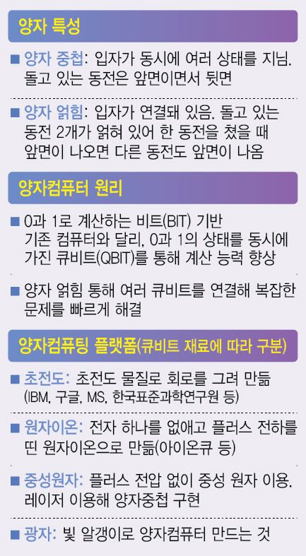 양자컴퓨터는 물질의 기본 단위인 원자와 그를 둘러싼 전자의 속성을 파악해 파동성과 입자의 이중성을 활용하는 것으로, 기존의 컴퓨터 정보 처리 방식과 다르다.
