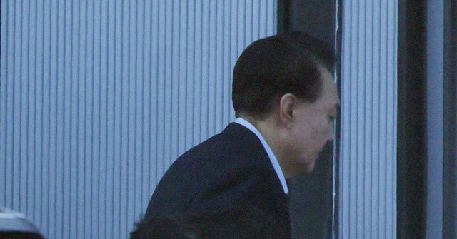 내란 우두머리 혐의로 체포된 윤석열 대통령이 15일 오전 경기 과천 고위공직자범죄수사처(공수처)에 도착해 조사실로 향하고 있다. / 공동취재-뉴스1