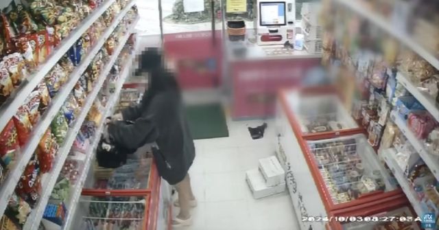 공개된 CCTV 영상을 보면 모자를 푹 눌러쓴 여성이 매장 안으로 들어와 과자를 챙겨 계산대로 향했다. 이 여성은 비닐봉지를 꺼내 과자를 담더니 냉동고 위에 올려놓고 다시 과자와 아이스크림을 잔뜩 꺼냈다.