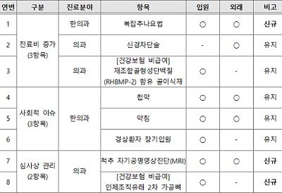 최근 진료비가 증가하고 있는 ▲복잡추나요법을 추가해 총 4항목을 선정했다.