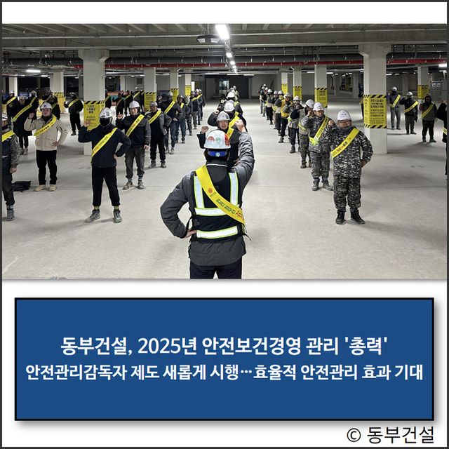 동부건설은 '안전관리감독자' 제도를 새롭게 시행한다고 15일 밝혔다. 이는 '산업안전보건법 시행령'이 지정하는 관리감독자와 '건설기술진흥법 시행령'의 분야별 안전관리책임자 및 담당자 기능 포괄해 역할을 수행하는 안전관리감독자를 지정해 운영하는 것이다.