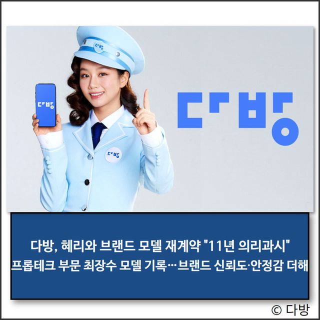 다방이 2025년에도 전속 광고 모델 배우 혜리와 함께하기로 하며 11년 연속 파트너십을 이어간다.