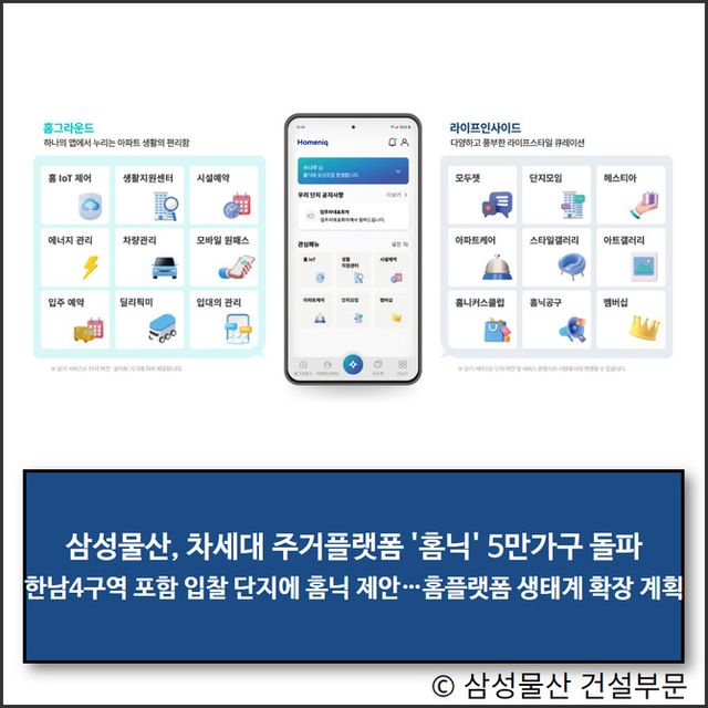 삼성물산(028260) 건설부문(이하 삼성물산)의 차세대 주거생활 플랫폼 '홈닉 (Homeniq)' 이용 세대수가 5만 가구를 넘어섰다.