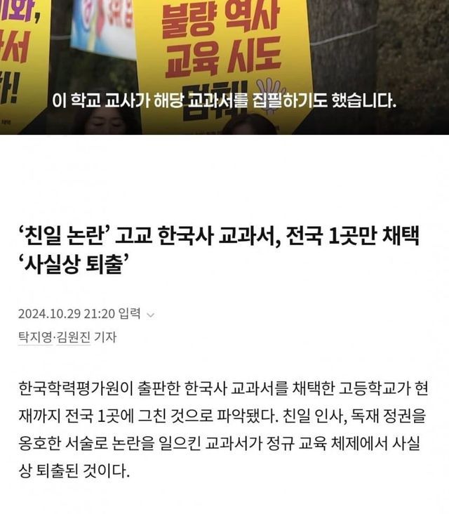 친일논란 교과서 채택해 난리난 고등학교ㄷㄷㄷ