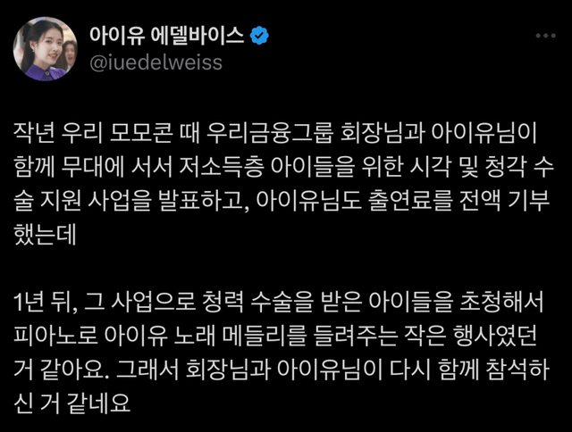 아이유가 며칠전 우리은행 행사에 깜짝 등장한 이유