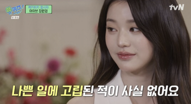 이날 장원영은 일명 ‘원영적 사고’라 불리는 ‘럭키비키’ 밈의 지원을 설명했다. 장원영은 “저한테는 너무 당연하고 생활적인 사고였다. 특별하다고 생각 안했다”고 운을 뗐다.