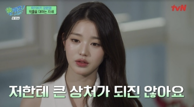 이날 장원영은 데뷔 8년차, 아이브 데뷔 4년차의 고민에 대해 묻자 “저는 행복이 가장 중요한데 이 일을 하다 보면 타의에 의해서 하게 되는 일이나 듣는 말이 많다”며 “장원영으로서는 이 일이 아니라 다른 일을 하고 싶을 수도, 그 말을 안 듣고 싶을 수도 있는데 그때 오는 스트레스가 가장 고민”이라고 담담하게 답했다.