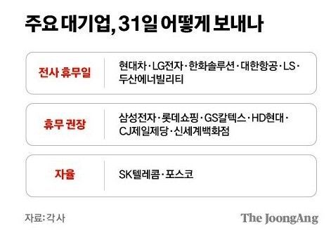 상당수가 31일을 전사 차원의 휴무일로 지정한 것으로 확인됐다.