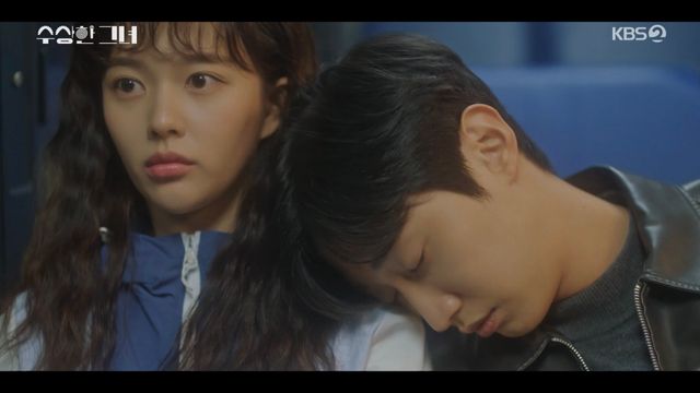 15일 방송된 KBS 2TV 드라마 '수상한 그녀'에서는 9회에서는 오두리(정지소 분)가 대니얼 한(진영)이 미묘한 핑크빛 기류를 이어갔다.