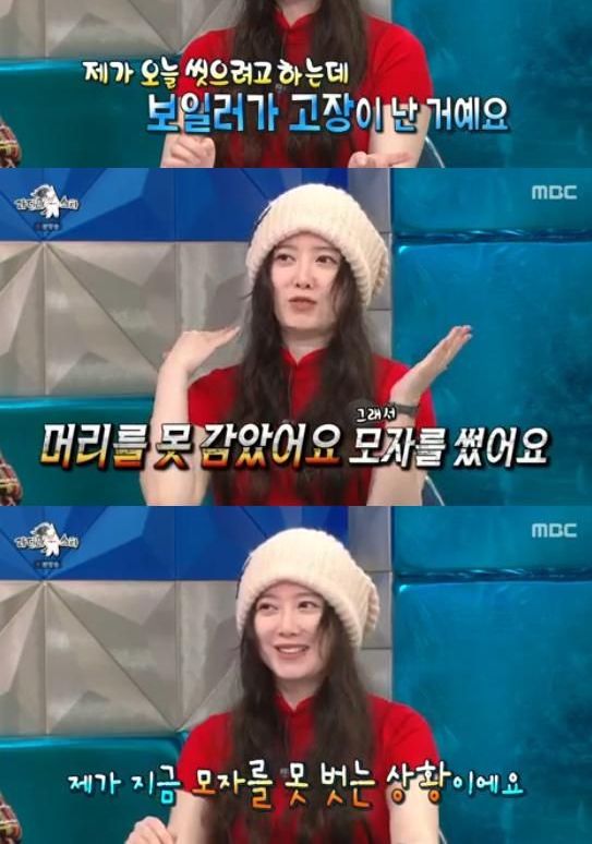 구혜선은 "오늘 씻으려고 했는데 보일러가 고장이 났다. 그래서 머리를 못 감았다. 안그래도 PD님이 모자를 벗었으면 좋겠다고 하셨는데, 제가 모자를 벗을 수 있는 상황이 아니다"라고 말하며 웃었다.