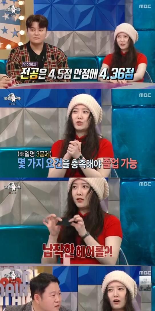 김구라는 머리를 내리고 털모자를 쓴 구혜선의 스타일을 언급하며 "기름이 많으면 모자를 벗고 머리를 올백으로 넘기는 것이 더 낫지 않느냐"고 했고, 구혜선은 "제가 오늘 털자를 쓰고 온 이유가 있다"고 했다.