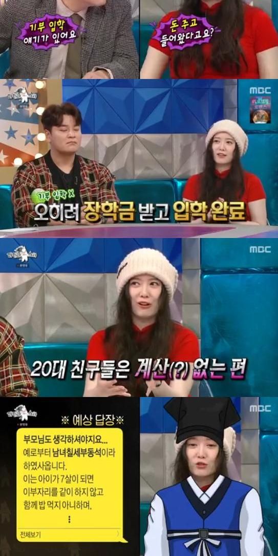 김구라는 "공부를 오래하면서 활동도 뜸했는데, 돈은 어떻게 해결하느냐"고 궁금해했고, 구혜선은 "어렸을 때 모아둔 돈으로 공부를 하고 있다"고 답했다.