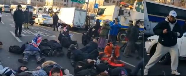 또 다른 영상에서는 그가 한남대로 한가운데에 드러누운 노인들을 향해 "엄마들 진짜 고마워요, 대통령께서 차도만 막아달라고 했어!"라고 말하는 모습이 담겼다. 노인들이 출근 차량 행렬을 막고 길바닥에 드러누운 가운데 그는 이 모습을 찍거나 도로를 이리저리 걸어다니기만 했다.
