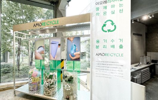 아모레퍼시픽(090430)은 판매 촉진이 아닌, 다 사용한 화장품 용기를 수거하는데 초점을 맞춘 이색 팝업스토어로 화제를 모았다. 역시 서울 성수동에서 개최한 팝업스토어로 용기 수거에 대한 다양한 정보, 쉬운 분리배출 방법, 업사이클링 용기 전시 등을 내세웠다.