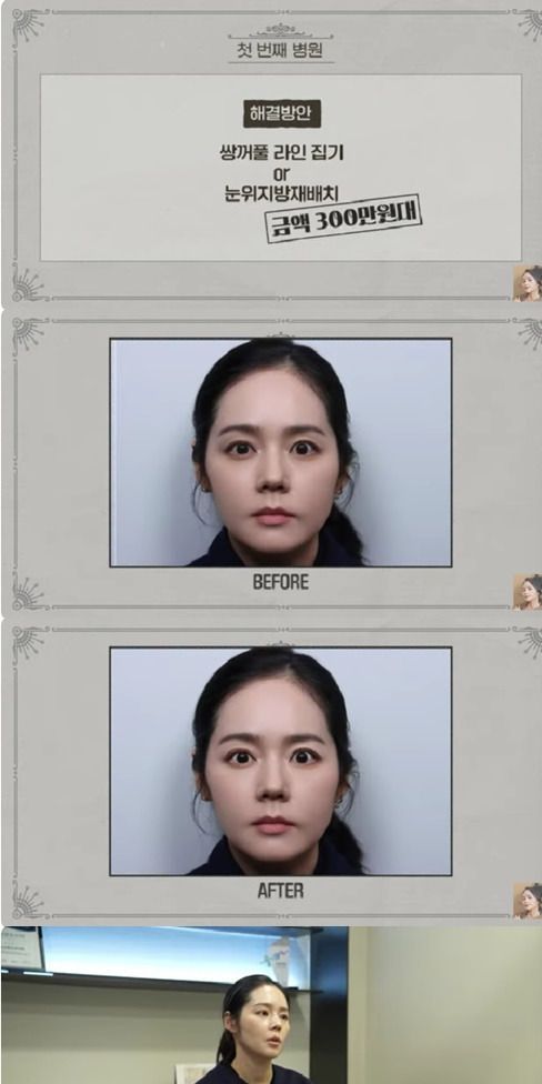 원장은 "간단하게 라인을 살짝 올려 잡는 거고 눈위지방재배치다. 그런데 지금은 그렇게 필요성을 못 느낄 거다. 200만원대 중반에서 300 중반 정도다. 당연히 더 할 데는 없다. 눈도 사실 불편하거나 아직 그런 걸 못 느끼면 할 정도는 아니다"라고 말했다.