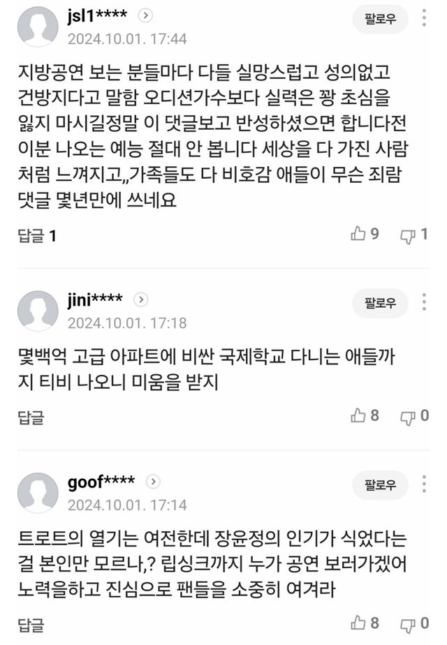 터질 게 터진 장윤정 지방행사 민심