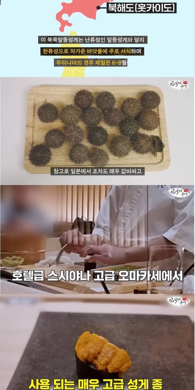 이 북쪽말똥성게는 kg당 수백만원을 호가.. 은보다 더 귀하다고..