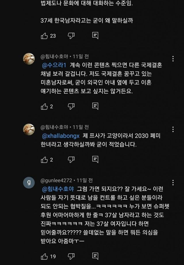 아 안 불편하시대잖아 자칭 ’37살 한국남자’야  (37살노괴) ㅋㅋ