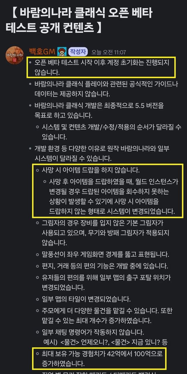 1. 오픈베타 캐릭터는 베타 종료 이후에도 캐릭터 삭제 x