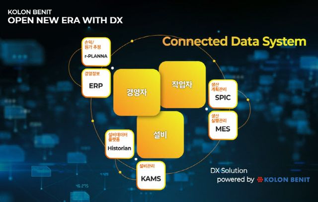코오롱베니트는 전사적자원관리(ERP) 시스템과 생산 데이터를 강화된 연결성으로 연동해 경영진의 전략적 의사결정을 지원하고, 제조실행시스템(MES)과 데이터 분석 솔루션을 통합해 품질 이슈에 신속히 대응할 수 있게 했다. 또한, 무인화 공정과 자동 물류창고의 데이터를 MES 시스템에 자동으로 전송하는 시스템까지 구현했다.