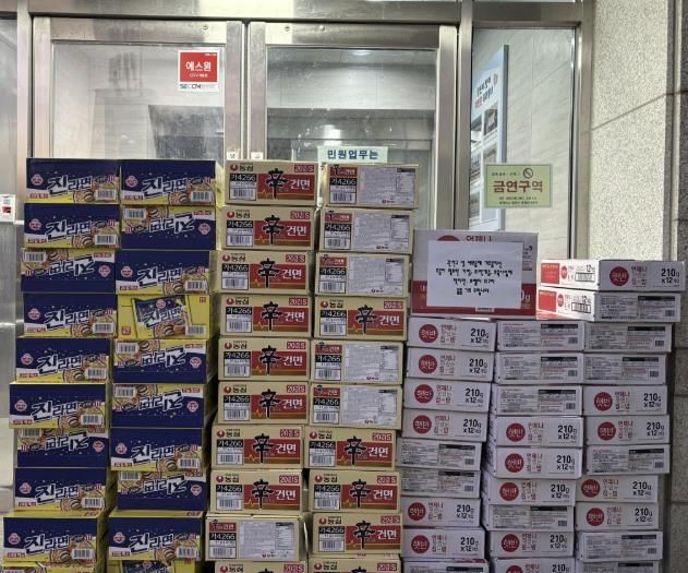 [와이뉴스] 지난 15일 이른 새벽, 세류2동 행정복지센터 문 앞에 익명의 독지가가 두고 간 라면 40개 상자와 즉석밥 30개 상자가 발견됐다.