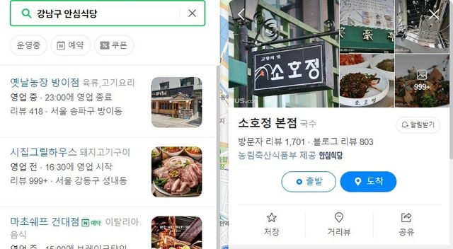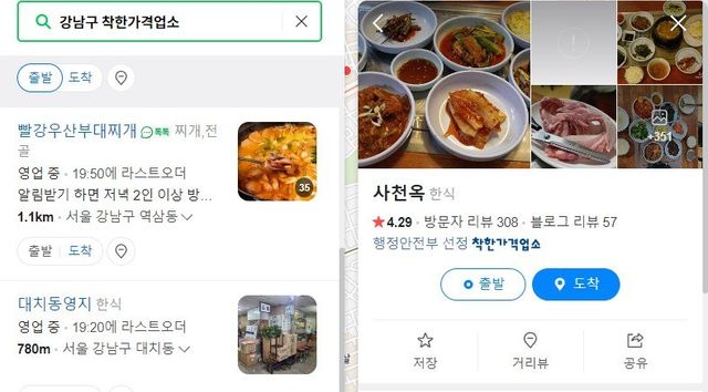 강남구 착한식당이라고 검색해도 같은 결과 나옴